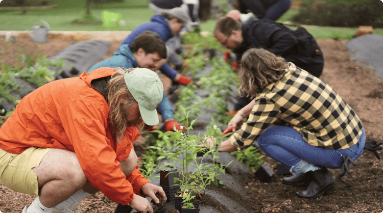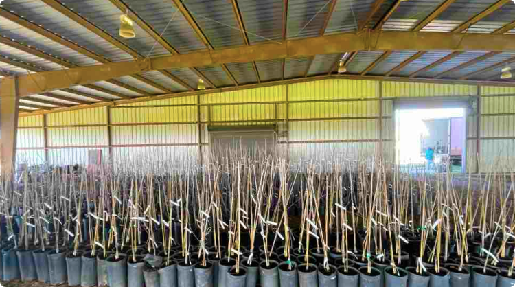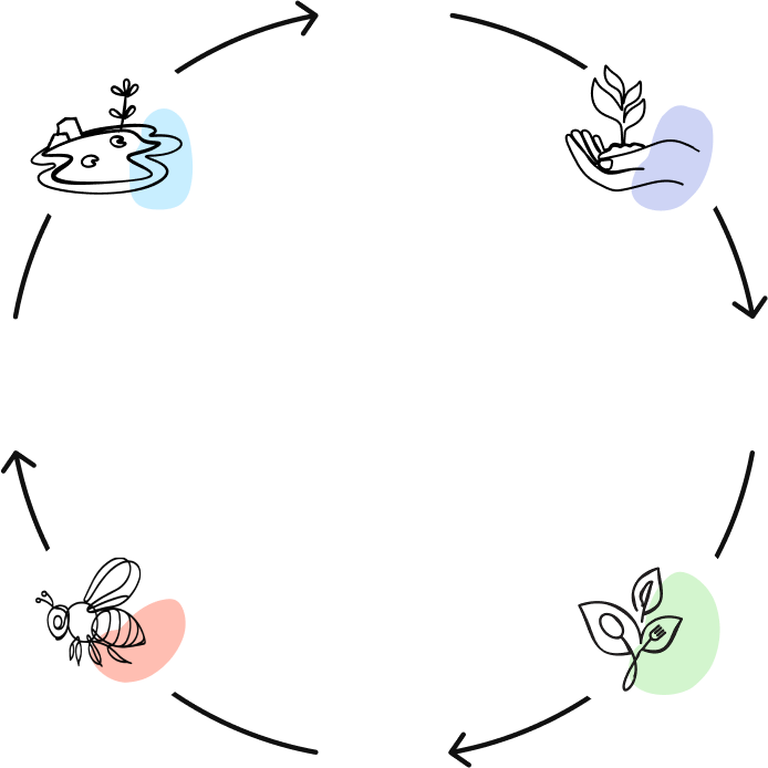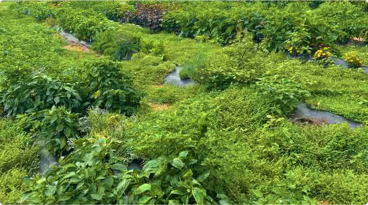 We harvest rainwater in our ponds and use it to irrigate our plants.